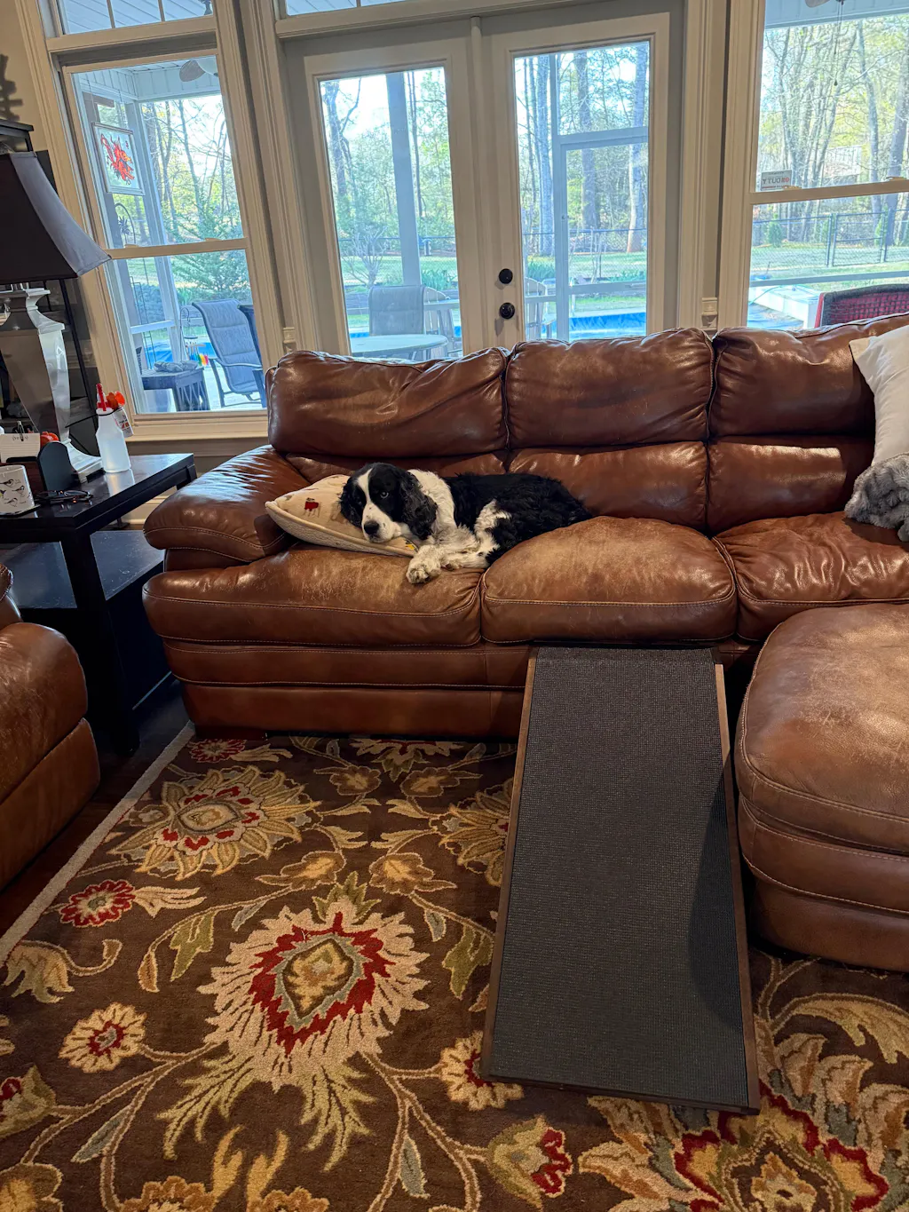 I have an older 50+ lb Standard Poodle who still loves jumping on things, so getting a sturdy ramp was a must. His back legs aren’t what they used to be, and he’s been more reluctant to go up and down the couch on bad days.