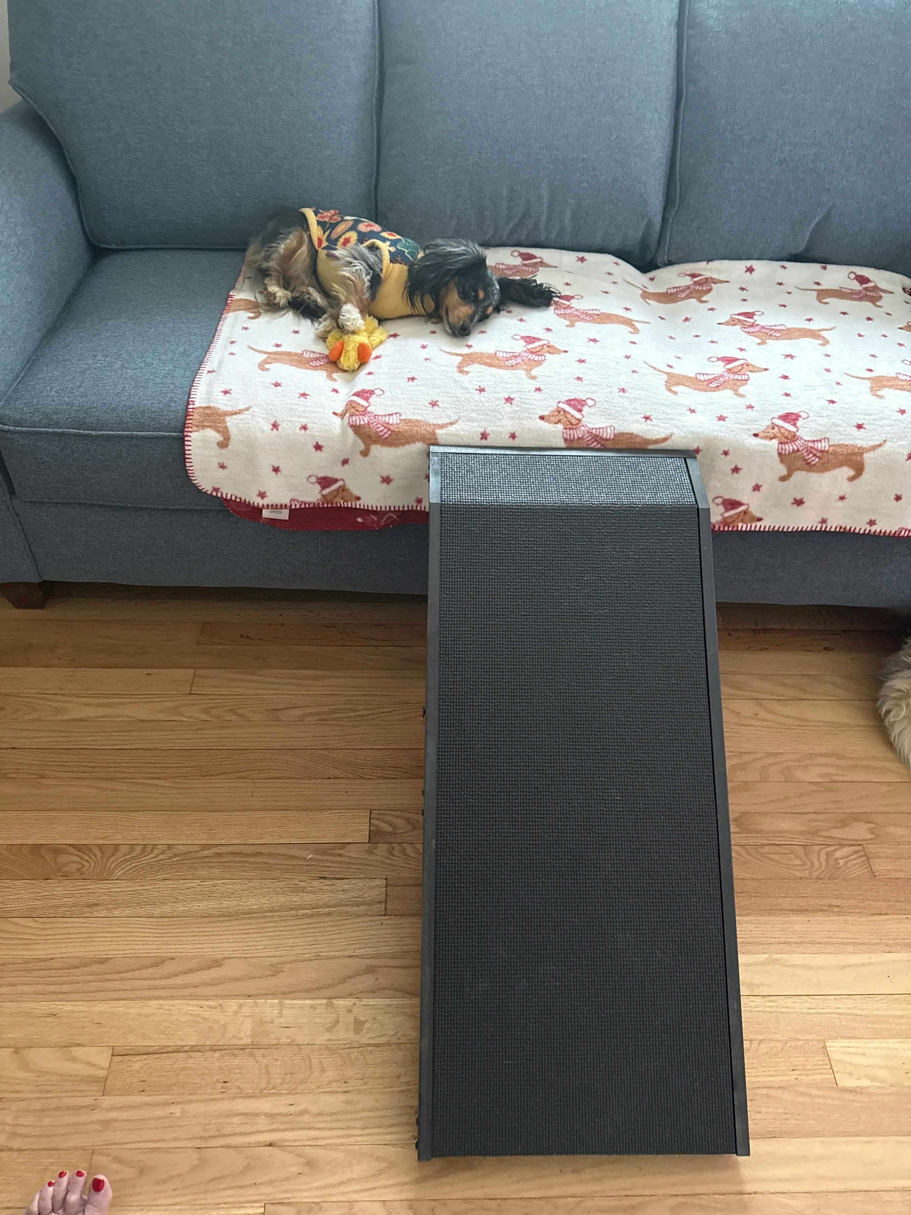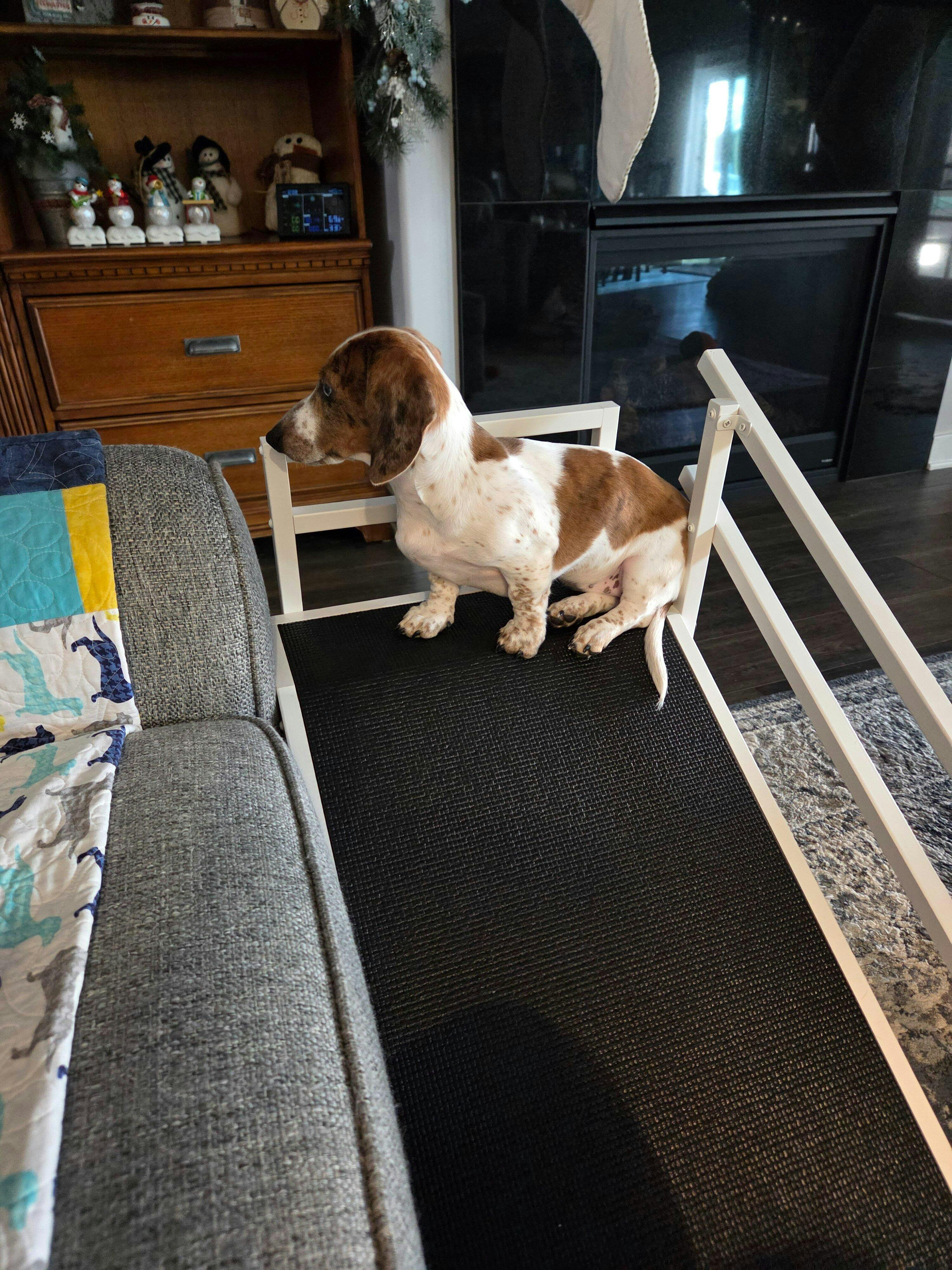 We got this couch ramp with rails to help our LeBeau be independent without jumping on/off furniture. The couch ramp is easy enough to move around the house so wherever we are LB can be included. He’s now had 2 surgeries for IVDD and we sure hope there won’t be a need for a third. This ramp is both functional and attractive and worth the price. Thank you for creating this, LB start using it immediately with very little encouragement from us, so he was needing this tool.