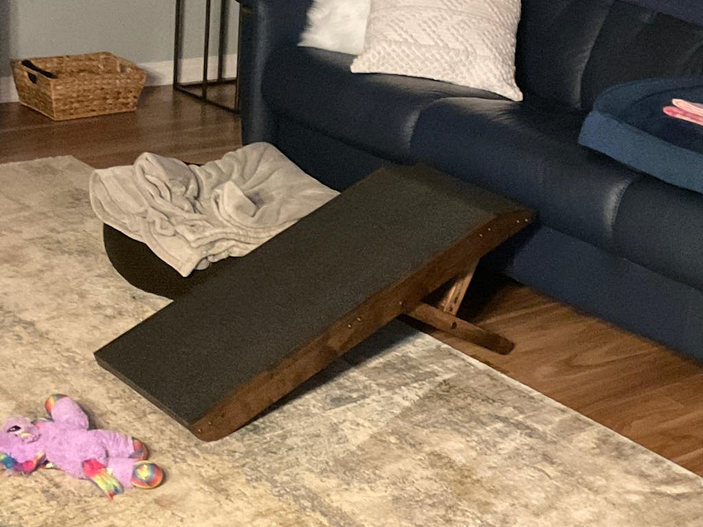 We have 2 Schnoodles who have both sustained back injuries over the past few years while attempting to jump up on things. We bought the couch ramp to prevent reinjury. It's well made, easy to assemble, and surprisingly lightweight despite being solid wood. I love the gradual incline, adjustable height, and no-slip surface. The rails seem to make our pups feel more secure. The only con is the price tag, which is definitely on the higher end. Next up ... start saving for the small bed ramp!