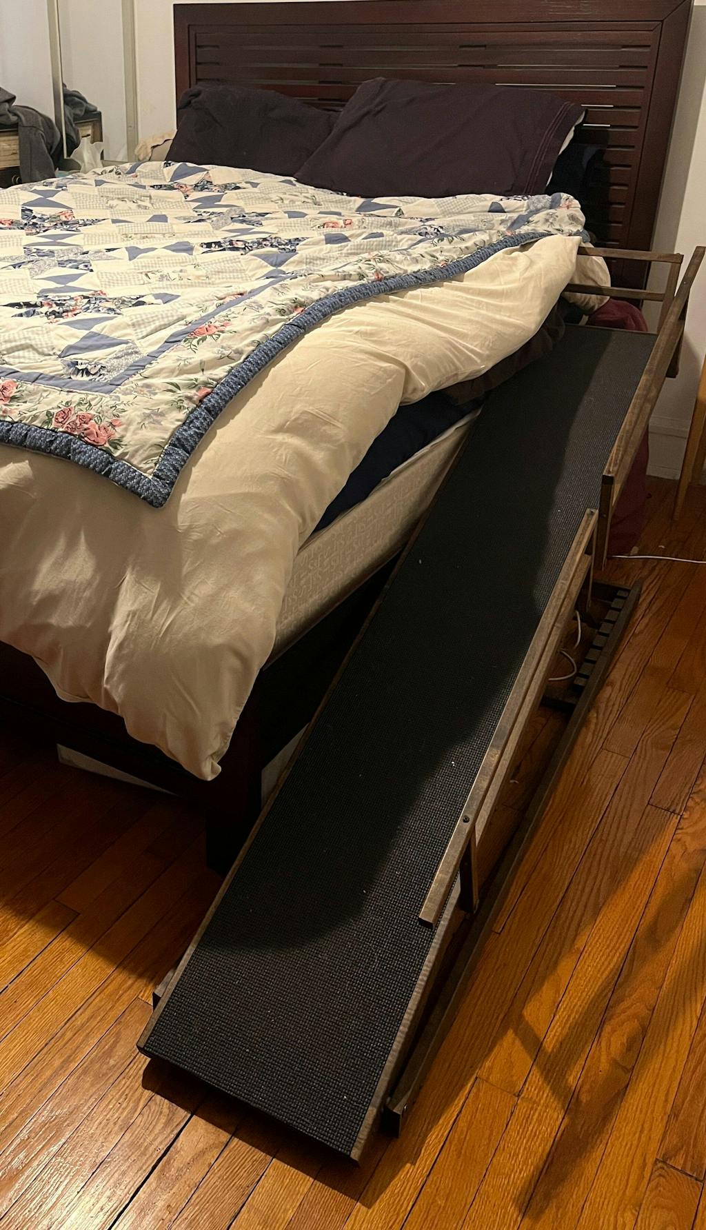 I have a 40lb. dog and a 70lb. dog who enjoy naps on my bed and snuggling at night. They are both getting older and I was getting concerned about them jumping on and off my bed. I decided to take a chance and order what Google said was “the best dog ramp”.