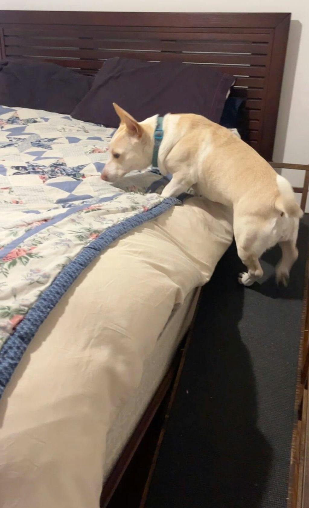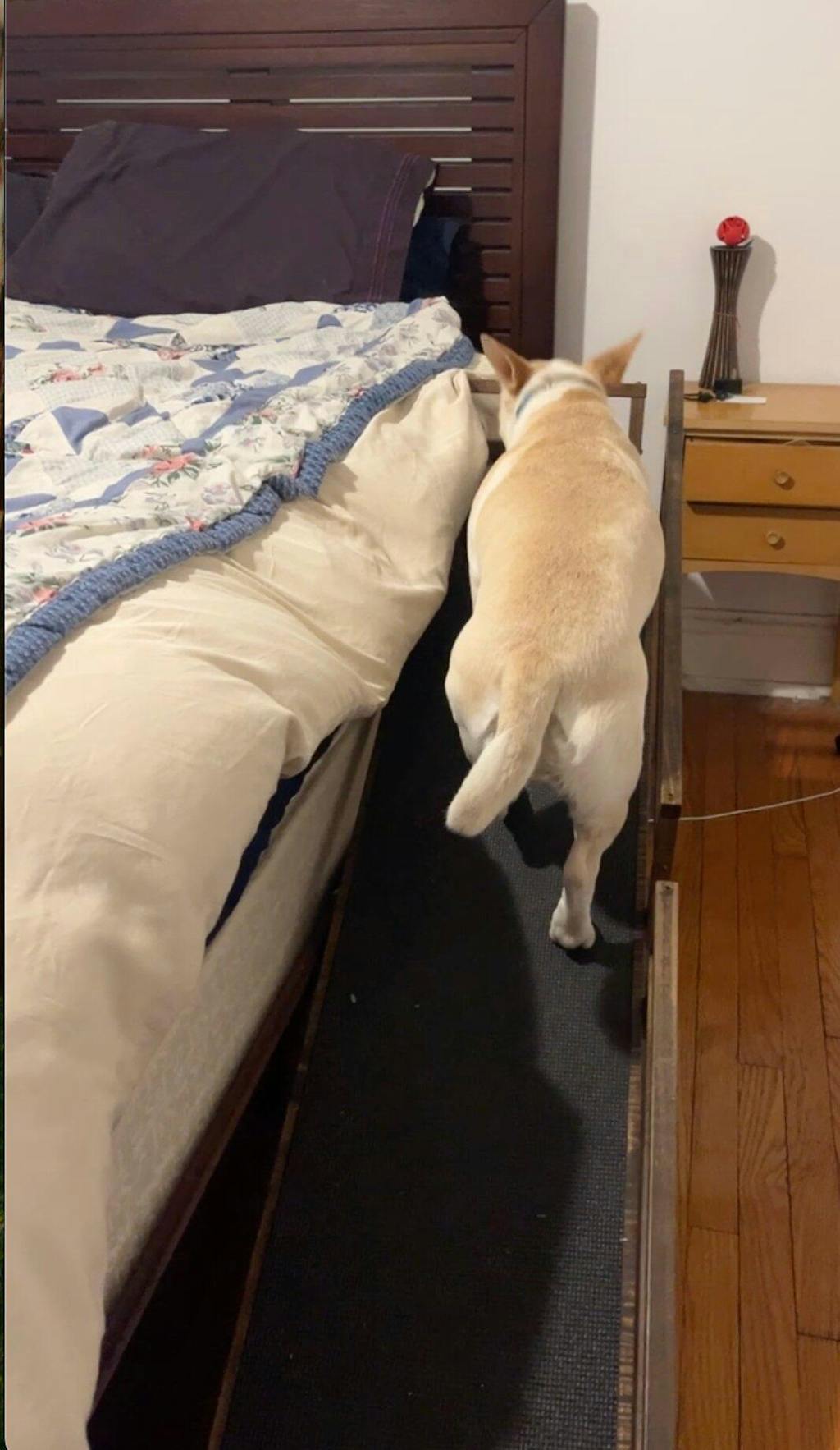 SO happy that we got this runway for our dog with very short legs! The method suggested by DoggoRamps for training /making the dog comfortable worked very well. We played on it with treats lying flat for 2 days, then set it up and used treats to coax her up the ramp. She still prefers to jump down, but it'll be there for her when she's older and that's not a good option. We no longer have to have a near panic attack every time she jumps up and *hopefully* makes it to the bed and doesn't fall backward. She just trots up the ramp and is happy as a ....dog on a bed.