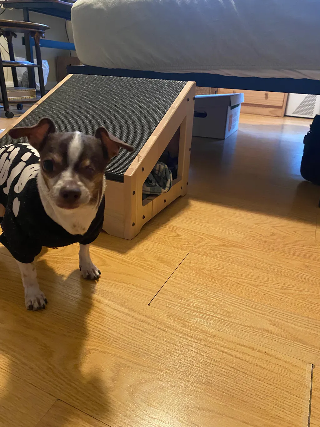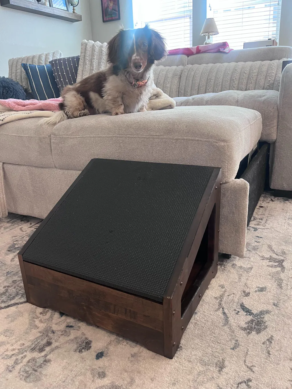 💡 The StepRamp is designed for fairly active dogs who might otherwise jump on and off furniture (or who are starting to do so with difficulty). The StepRamp offers a helping step up and down to lessen the impact on their joints, but it still does require a small 6" hop from floor to ramp.
